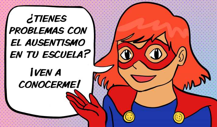 Súper Asistencia es una heroína que promueve la asistencia a clases en los niveles iniciales. Con sus súper poderes, vence a su archi-enemigo Inasistencia, motiva a los niños a asistir a la escuela y les explica la importancia de que no falten, porque cada día cuenta.